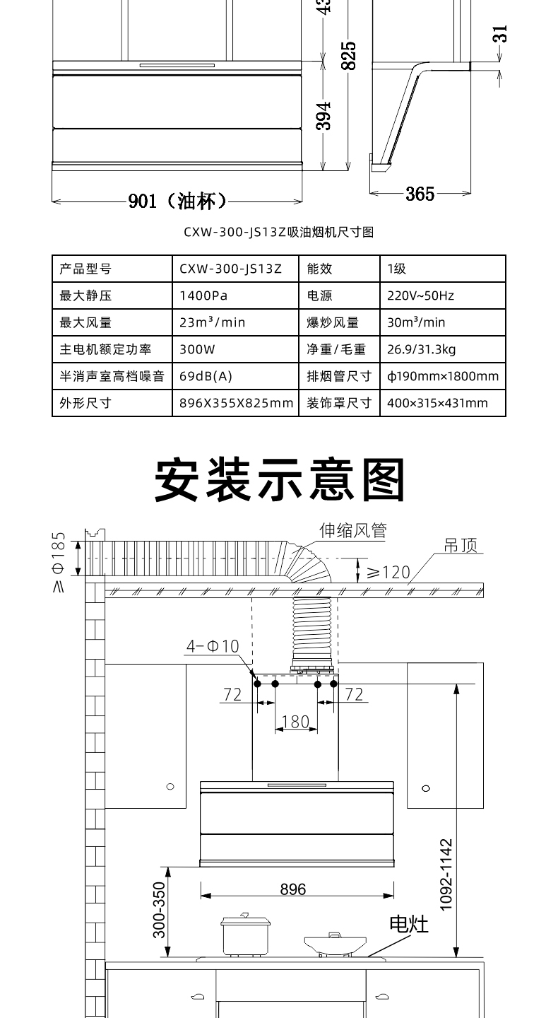 最大静压:1400Pa 能效:1级